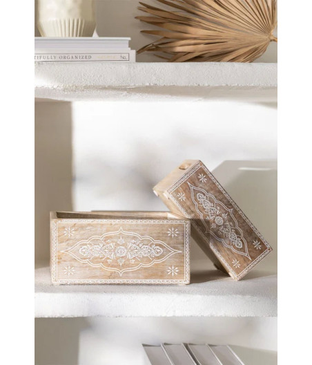 2 Suspensions / Boîtes en bois : Ajoutez une touche de rusticité à votre décoration avec deux suspensions ou boîtes en bois, idéales pour ranger vos petits objets tout en ajoutant une esthétique balinaise authentique.